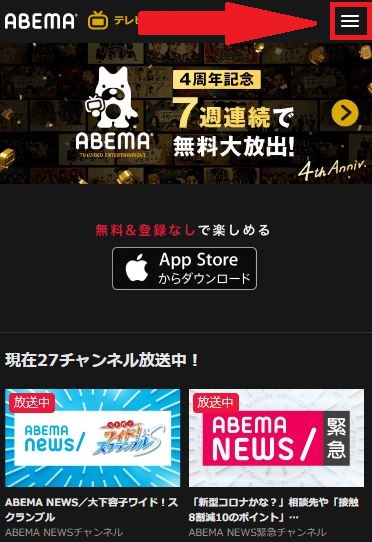 まず以下のリンクからABEMAの公式サイトに行きます。