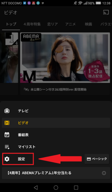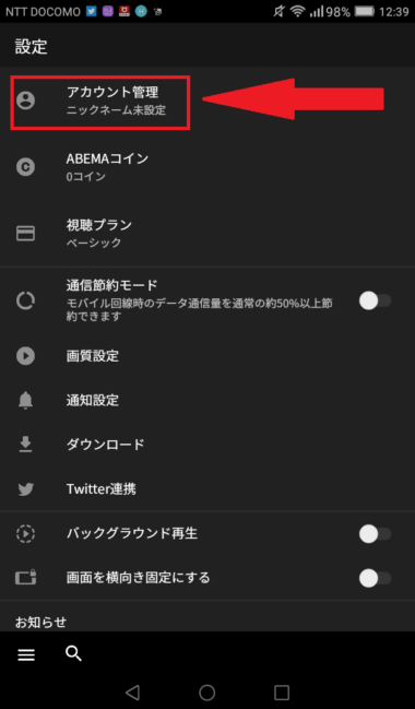 ABEMAアプリのプレミアムへのアカウント切替方法