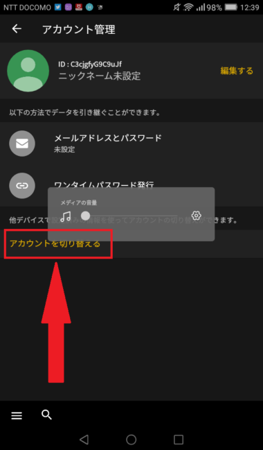 「アカウントを切り替える」を押します。