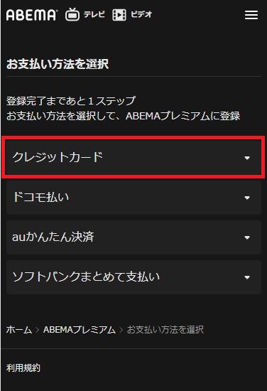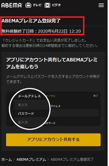 - ABEMAプレミアム登録完了
