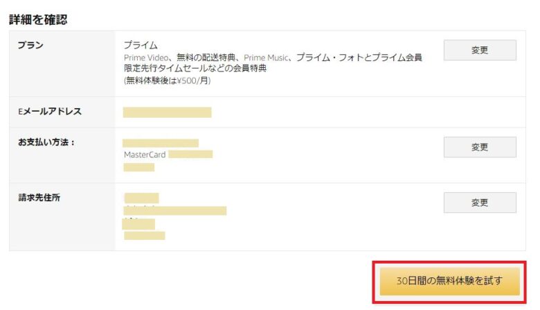 内容が正しければ「30日間の無料体験を試す」をクリックします。