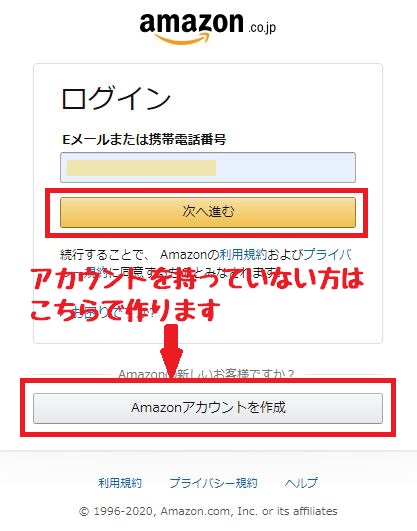 Amazonアカウントを持っていない方はここで作ることができます。