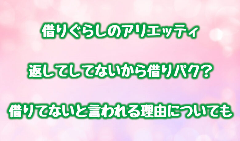 ここではアリエッティたちの生活は借りてないから「借りパク」なのか、考察します。