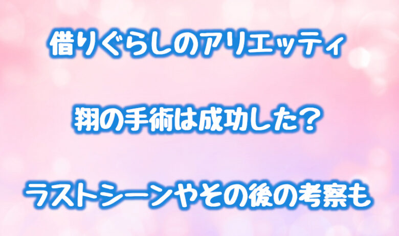 このセリフを見る限り「借りぐらしのアリエッティ」は翔が過去を振り返った作品と考えられるので、彼の手術は成功したと考えるのが一般的です。