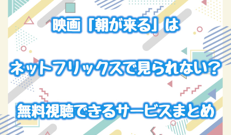 「朝が来る」を無料視聴できる動画配信サービスまとめ!ネットフリックスでは見られない