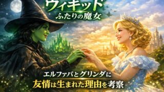 ウィキッドふたりの魔女 ウィキッドふたりの魔女/エルファバとグリンダに友情は生まれた理由を考察 映画「ウィキッド ふたりの魔女」を深く味わった人ほど、心に残るのは壮大な魔法や政治的構造よりも、エルファバとグリンダという2人の関係性ではないでしょうか。対立から始まり、理解へと変わり、そして異なる道へと分かれていくその過程は、単なる友情物... 2026.02.15 ウィキッドふたりの魔女