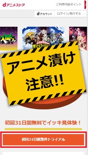 dアニメストアは初回登録に限り31日間無料で利用することができます。