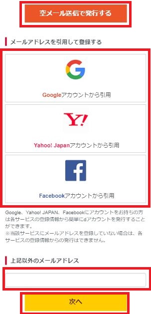 - メールアドレスを引用して登録する(Google、Yahoo!、Facebook)