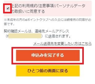 「利用規約/注意事項に同意する」にチェックを入れ「申込みを完了する」をクリック。