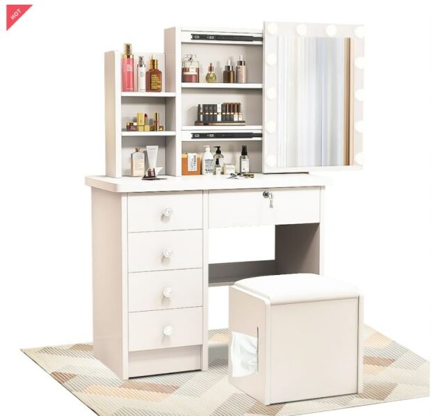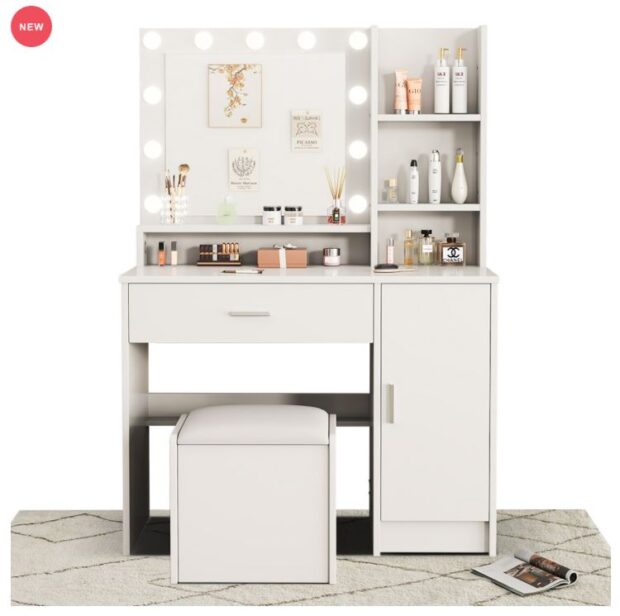 【1000円クーポン付き】 ドレッサー 大型 100cm幅員 岩盤天板 スツール付き テーブル おしゃれ 大容量収納 クリーム風 10段階明るさ調整可能 3色LEDミラー 新型 化粧台【d16-mc】 | コスパ抜群!高品質なドレッサー・化粧台 | EJ公式オンラインストア