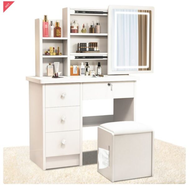 【1000円クーポン付き】 ドレッサー おしゃれ コンパクト テーブル スライド式 10段階明るさ調整可能 3色LED ミラー 化粧台 最新型 【v01】 | コスパ抜群!高品質なドレッサー・化粧台 | EJ公式オンラインストア