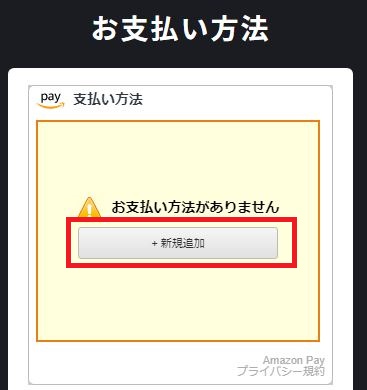 支払い方法を決めていない方は「新規追加」をクリックし、クレジットカードの登録を行います。