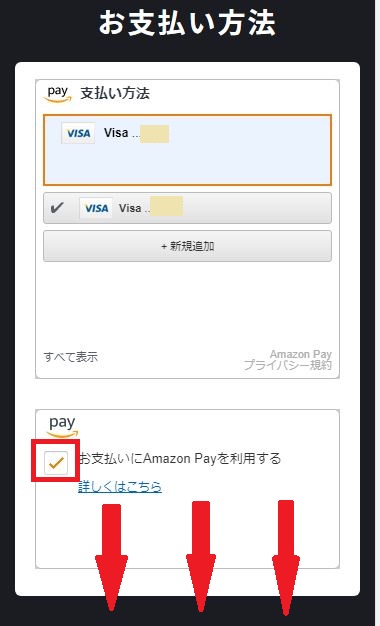 「お支払いにAmazonPayを利用する」にチェックを入れ、下にスクロールします。