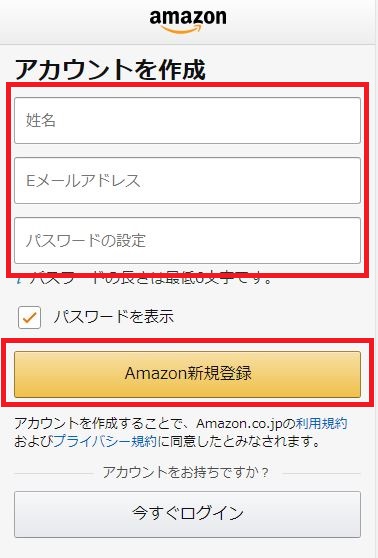 初めてAmazonアカウントを作る方でも3分程度で登録できるでしょう。