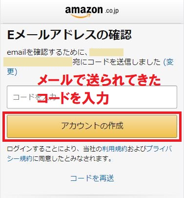 登録したメールアドレスに確認コードが送られるので、入力してアカウントを作成します。