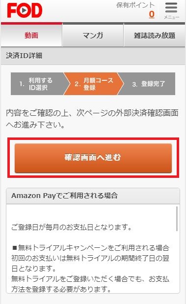 ここではスマートファンの画面を使い、Amazon Pay経由でFODに登録する方法をご紹介します。