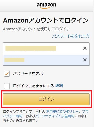 AmazonPayを利用している方なら「Amazonアカウントでログイン」をタップします。