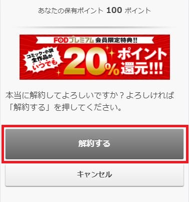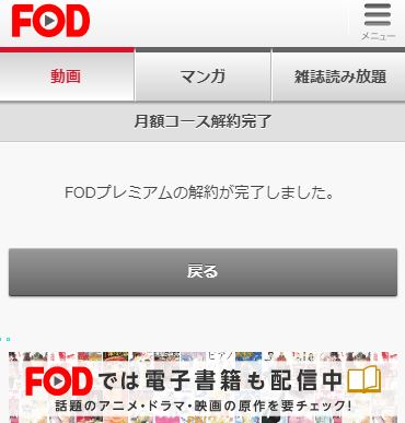「FODプレミアムの解約が終了しました」と出たら解約手続きは終了です。