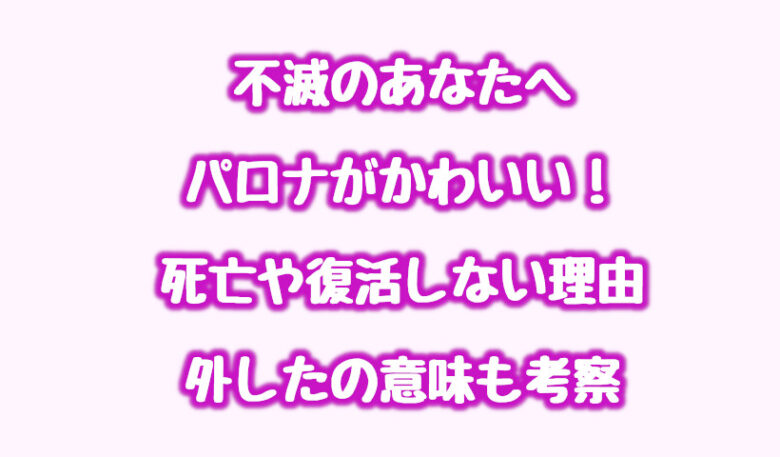 今回はそんなパロナのかわいい魅力や死亡、復活しない理由についてまとめました。