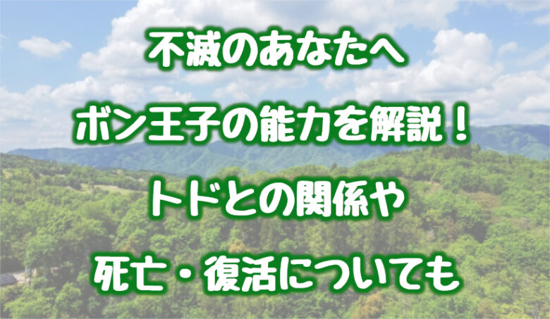 不滅のあなたへボン王子の能力を解説!トドとの関係や死亡・復活についても