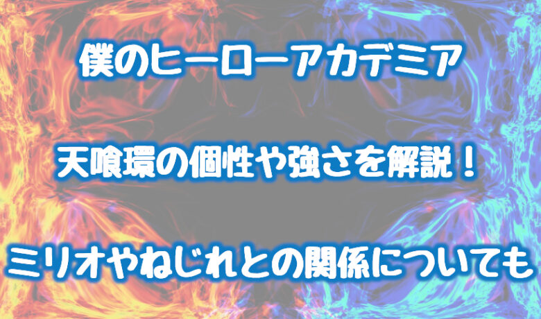 雄英高校ビッグ3の1人である天喰環の個性や強さ、ミリオやねじれとの関係について解説してきました。