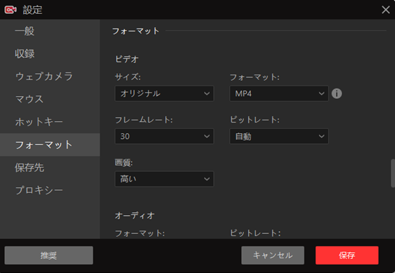 必要に応じて、フォーマットやホットキーなどの設定を行います。