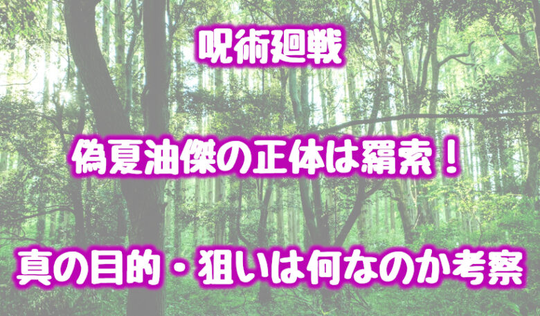 今回は偽夏油傑の正体が羂索だったことや、彼の真の目的・狙いは何なのか考察していきます。