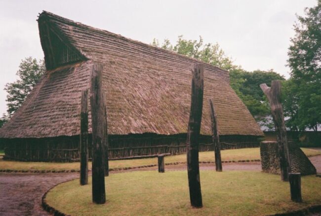 ここには縄文時代の竪穴住居を再現した建造物や資料館があります。