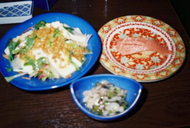 被写体は大トロ、サラダ、たこわさですが、焦点が合っていませんね。