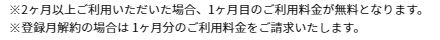 2ヶ月以上ご利用いただいた場合、1ヶ月目のご利用料金が無料となります。