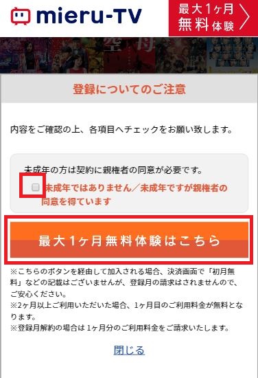 登録手続きを理解した上でmieru-TV最大1ヶ月無料に申し込む方はこちら↓