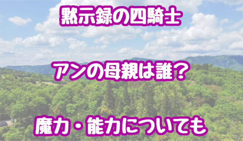 そこでこの記事では、アンの母親やアンの魔力や能力がどんなものなのか詳しくまとめて解説していきます。