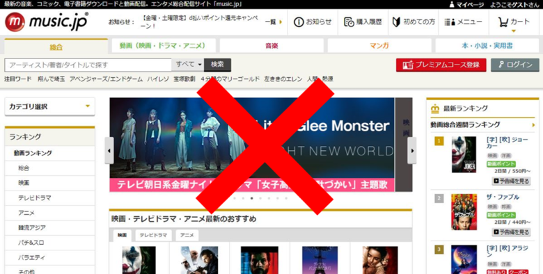CMなどで話題のmusic.jpは音楽だけでなく映画、スポーツ・キッズ作品の専門チャンネル、マンガ、書籍など幅広いコンテンツを提供する配信サービスサイトです。