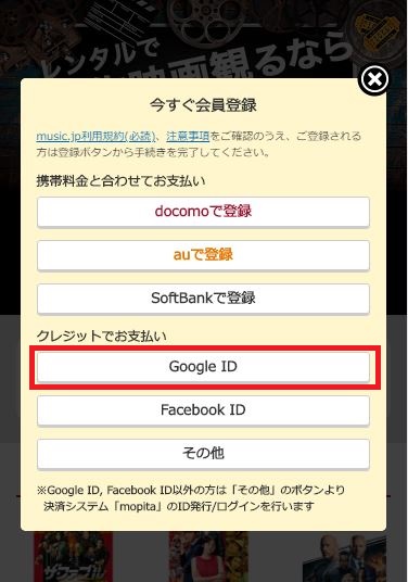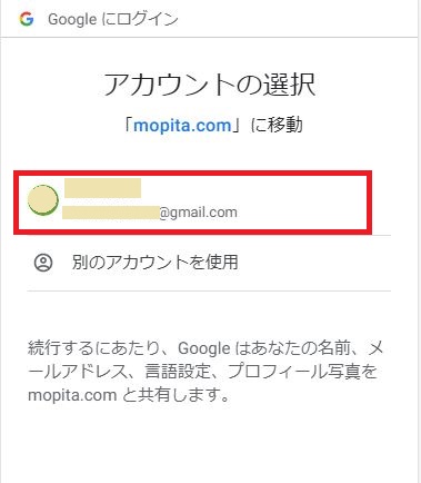 → Google、Facebook、mopitaいずれかのアカウントが必要