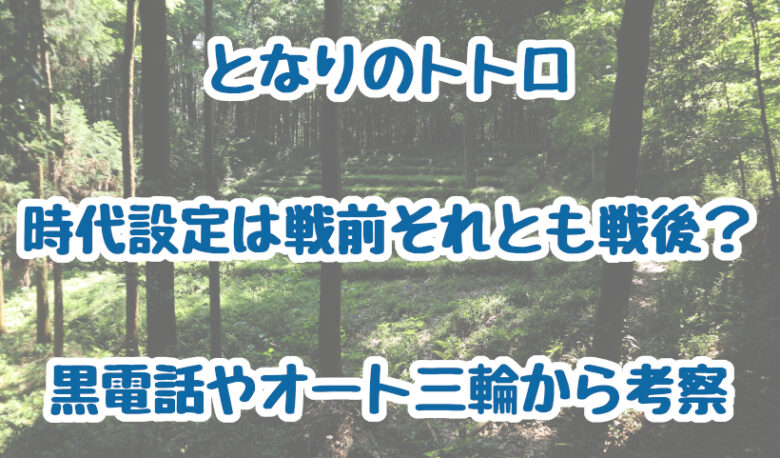 この記事では、「となりのトトロ」の時代設定は戦前か、戦後なのかを、物語に登場する黒電話やオート三輪から考察していきたいと思います。