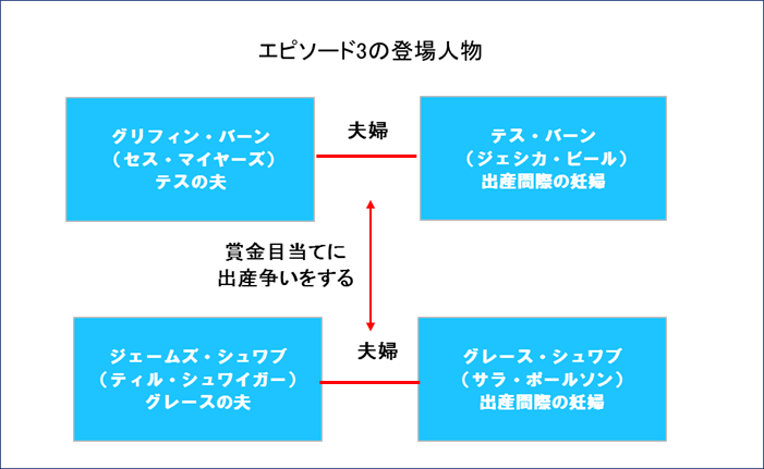 ここにバーン夫妻とシュワブ夫妻、とくに夫同士の賞金を懸けての熾烈な出産競争が始まります。