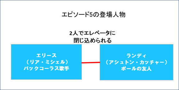 電話のあとランディが外出しようとエレベータに乗ると、同じ階のエリースが乗り込んできます。