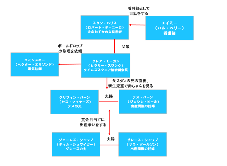 「ニューイヤーズ・イブ」を人物相関図付きで登場人物の人間関係を解説しました。