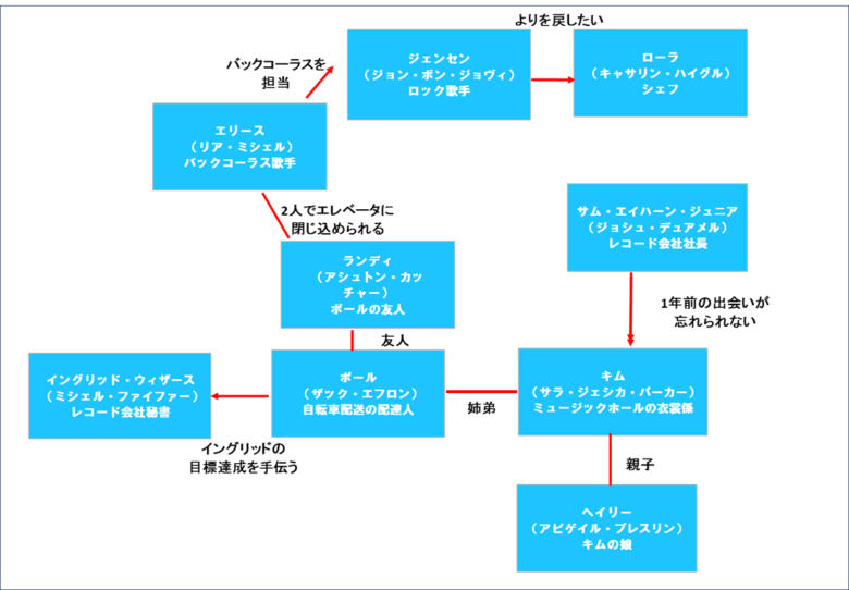 「ニューイヤーズ・イブ」のキャスト(登場人物)の全体相関図
