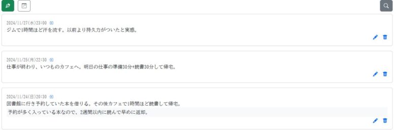 日記の表示もシンプルで見やすい