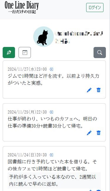 One Line Diaryは自分だけの日記にもできるし、一般公開もできます。