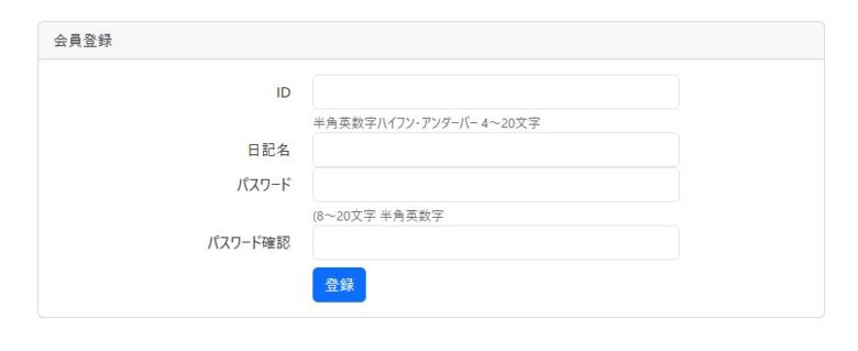 ID、日記名、パスワードを入力して、登録を完了させましょう。