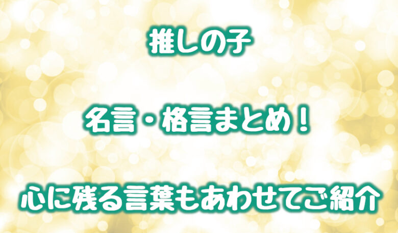この記事では「推しの子」で印象的だった名言・格言について解説しました。