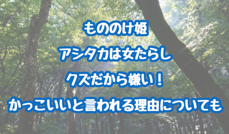 今回の記事では、アシタカが女たらしのクズといわれてしまっている理由と、アシタカのカッコよさについて解説しますね。