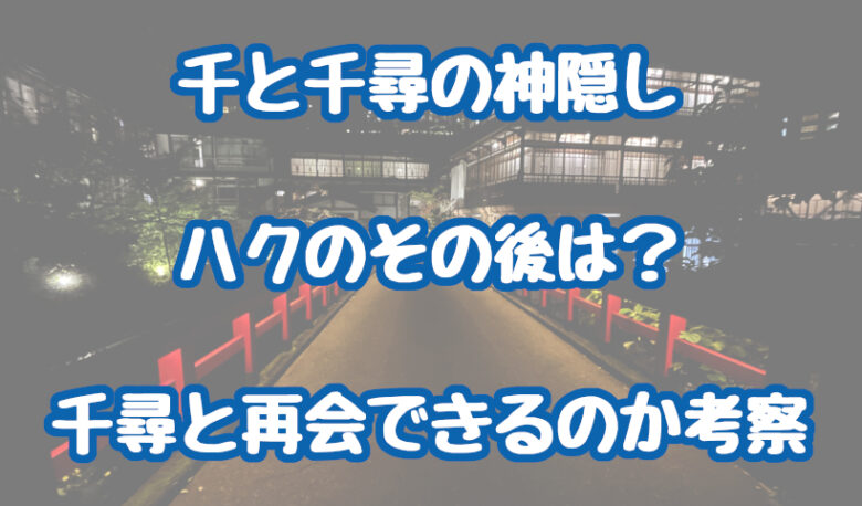 今回の記事では「千と千尋の神隠し」のハクのその後や、千尋とは再会できるのかを考察しました。
