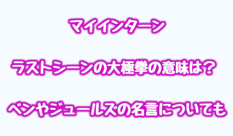 ジュールズの立場から「マイ・インターン」のラストの太極拳のシーンを考えてみます。