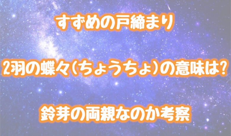 2頭の蝶々は、鈴芽の両親を意味しているという説。