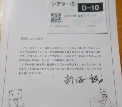 実はこのポストカード、裏面は新海誠監督からのメッセージ付き。