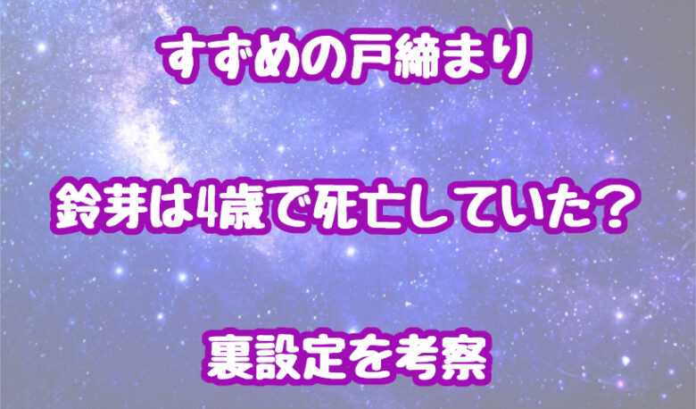 鈴芽死亡説の内容は、「4歳の時、常世に迷い込んだ鈴芽は死亡している」というもの。