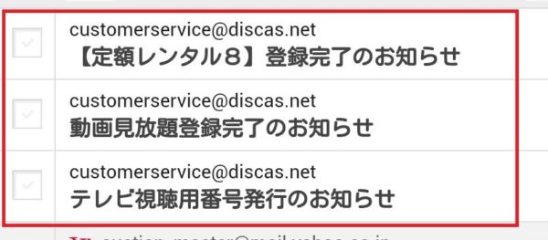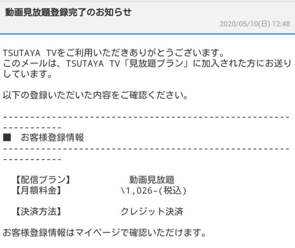 3通目は定額レンタル(DVD、Blu-ray、CDレンタル)への登録が完了したことを知らせるメールです。